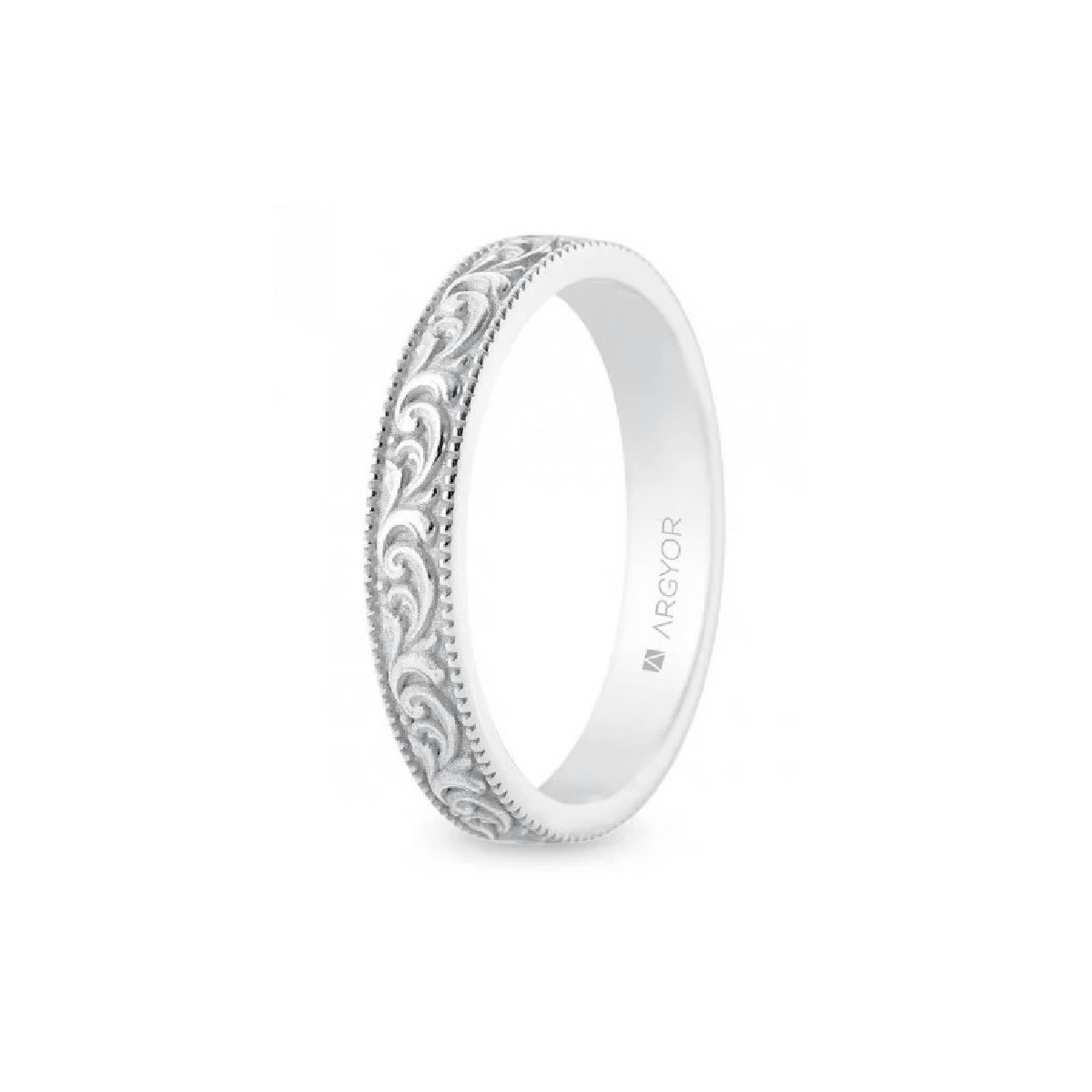 Alianza en oro blanco con motivos inspirados en la naturaleza**Grabado gratuito**TENEMOS MÁS ALIANZAS DE BODA DISPONIBLES EN JOIERIA DEL MERCAT. LLÁMANOS AL 93 357 75 62 o MÁNDANOS UN WHATSSAP AL 620 833 162 PARA CONCERTAR UNA CITA Y RECIBIR ASESORAMIENTO PERSONALIZADO.