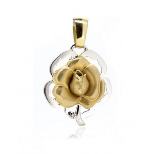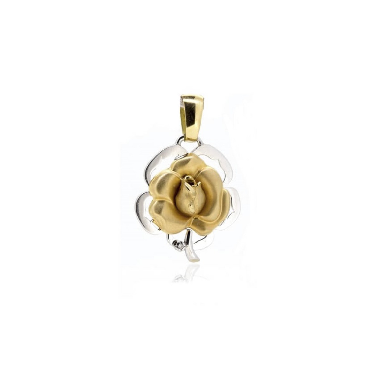 Precioso colgante en forma de rosa en oro amarillo 18 kilates y plata con diamante.