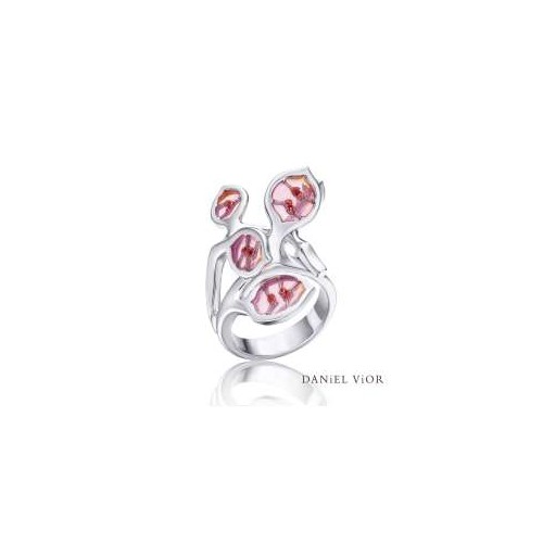 Anillo Lunaria esmalte rosa motivos naturales