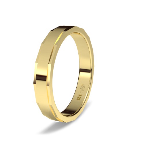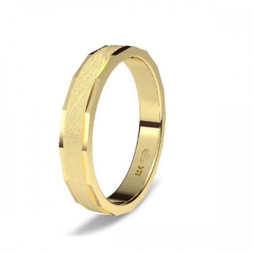 Anillo de 4 mm de ancho, oro amarillo de 18 quilates acabado mate hielo y decoración tuercas.