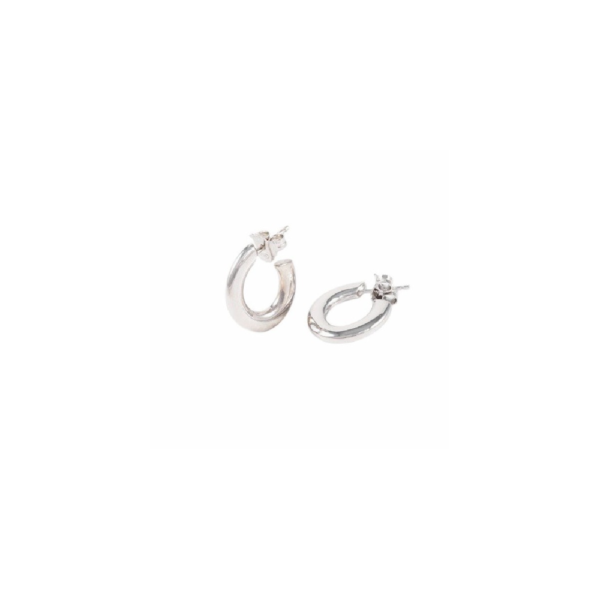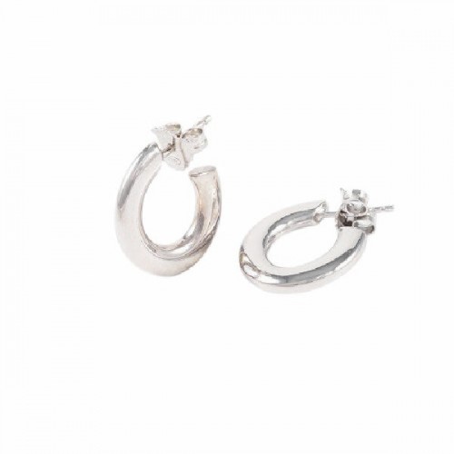 Pendientes tipo criolla en plata forma oval, cierres de presión de máxima seguridad.