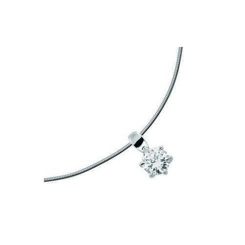 Collar DiamonFire 1310011098 con Colgante Solitario Engastado En Garra, de plata 925mm con platino, paladio y rodio con una circonita de 5,65 mm y cadena de eslabones de 4 mm de grosor y 1 mm de diametro.
