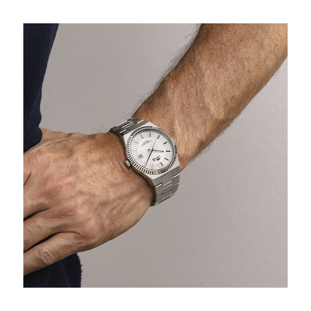 Este reloj Lotus Freedom Collection 18835/1 está orientado para hombre, caja de acero con forma circular de color plateado y cadena de acero plateada. Color de la esfera en plateado. Numeración y agujas en acero. Bisel de acero troquelado. El cristal es mineral, movimiento cuarzo y el display analógico. Funciones: 3 agujas y calendario. Impermeabilidad: 10 ATM. Diámetro: 40 mm.