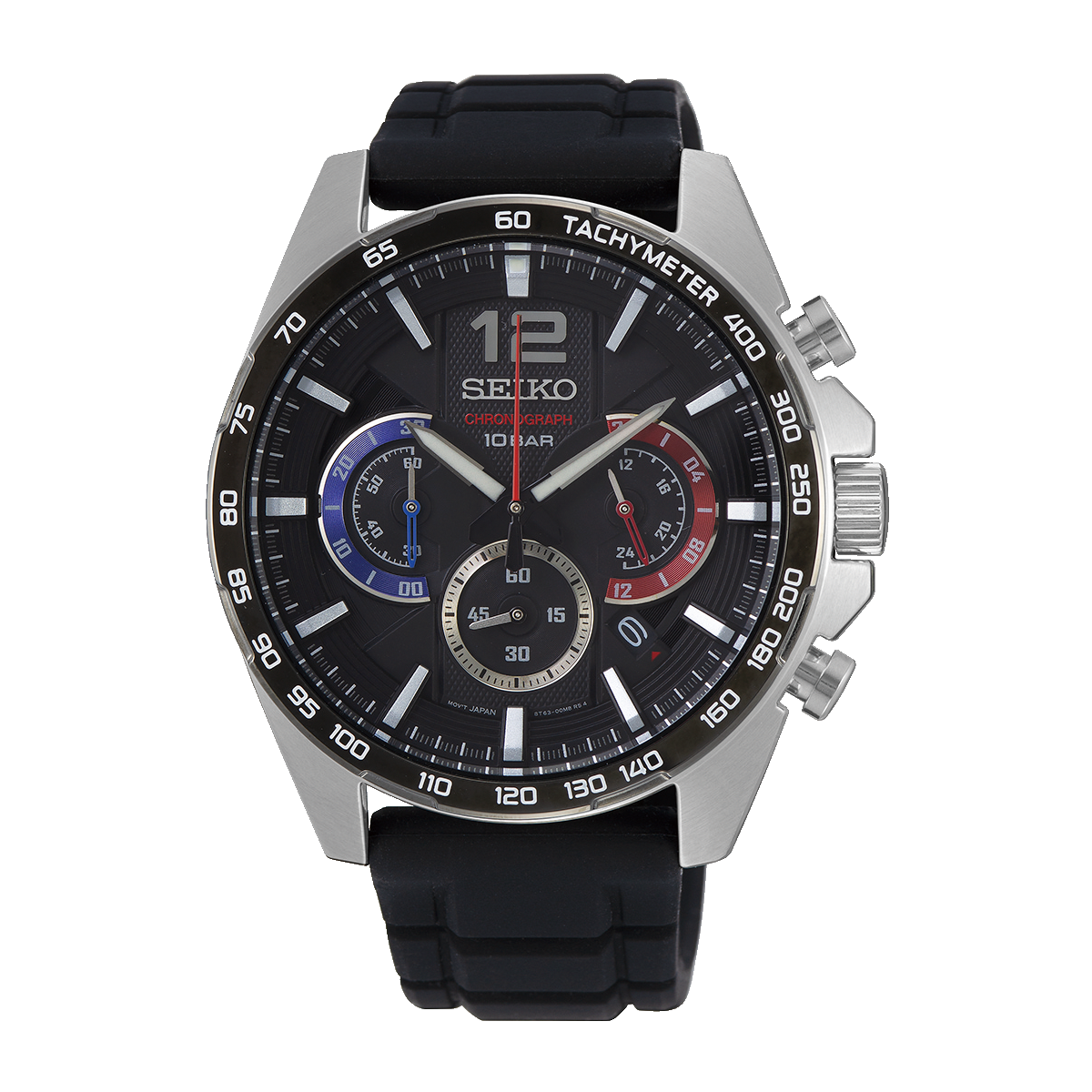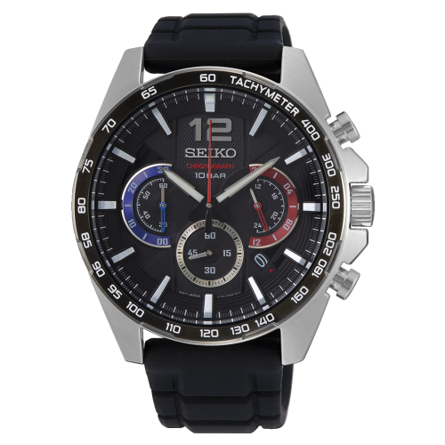 Reloj Seiko ssb347p1 para hombre cronógrafo en acero y silicona, esfera en negro azul y rojo, agujas en rojo azul Neo Sports 8t63, movimiento japones, garantía Seiko