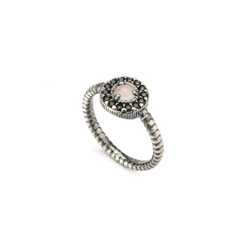 15620 ANILLO PLATA OJO GATO ROSA Y CIRCONITAS