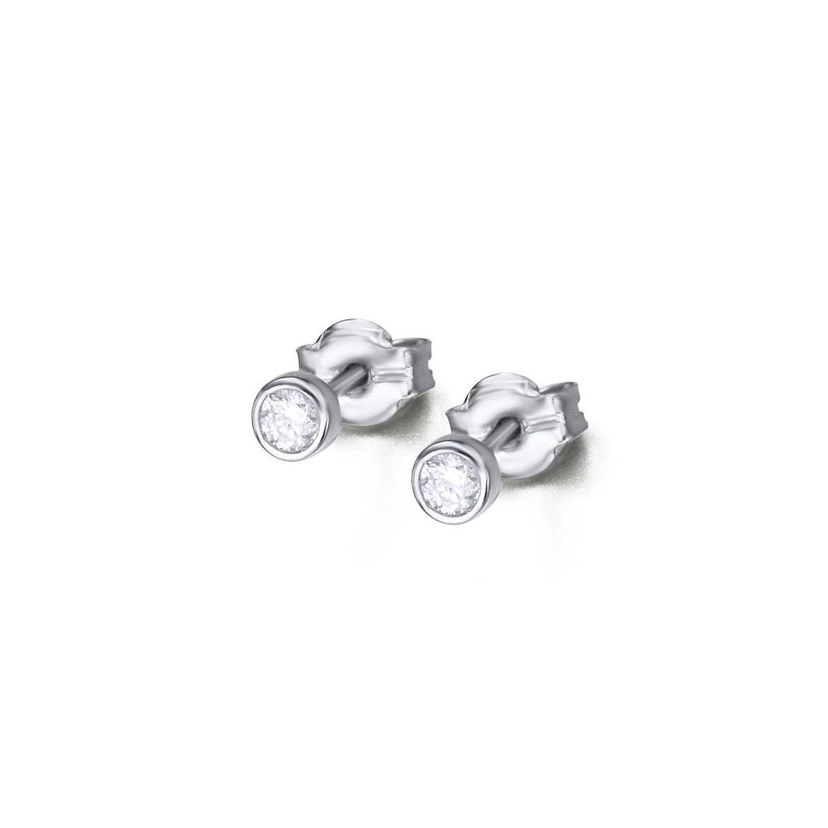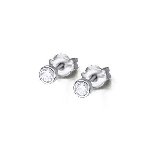 Pendientes tipo chatón en oro blanco de 18 kilates y diamantes talla brillante de 0.10 kilates de peso. Un básico de mujer, para todas las ocasiones.