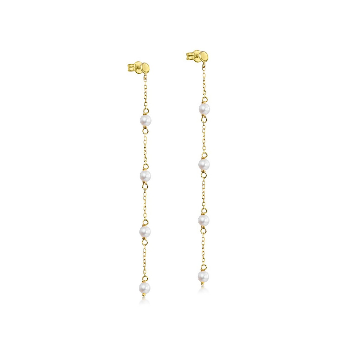 Pendientes de cadenita en oro amarillo de 18 kilates y 4 perlas cultivadas de 3,5mm de diámetro.