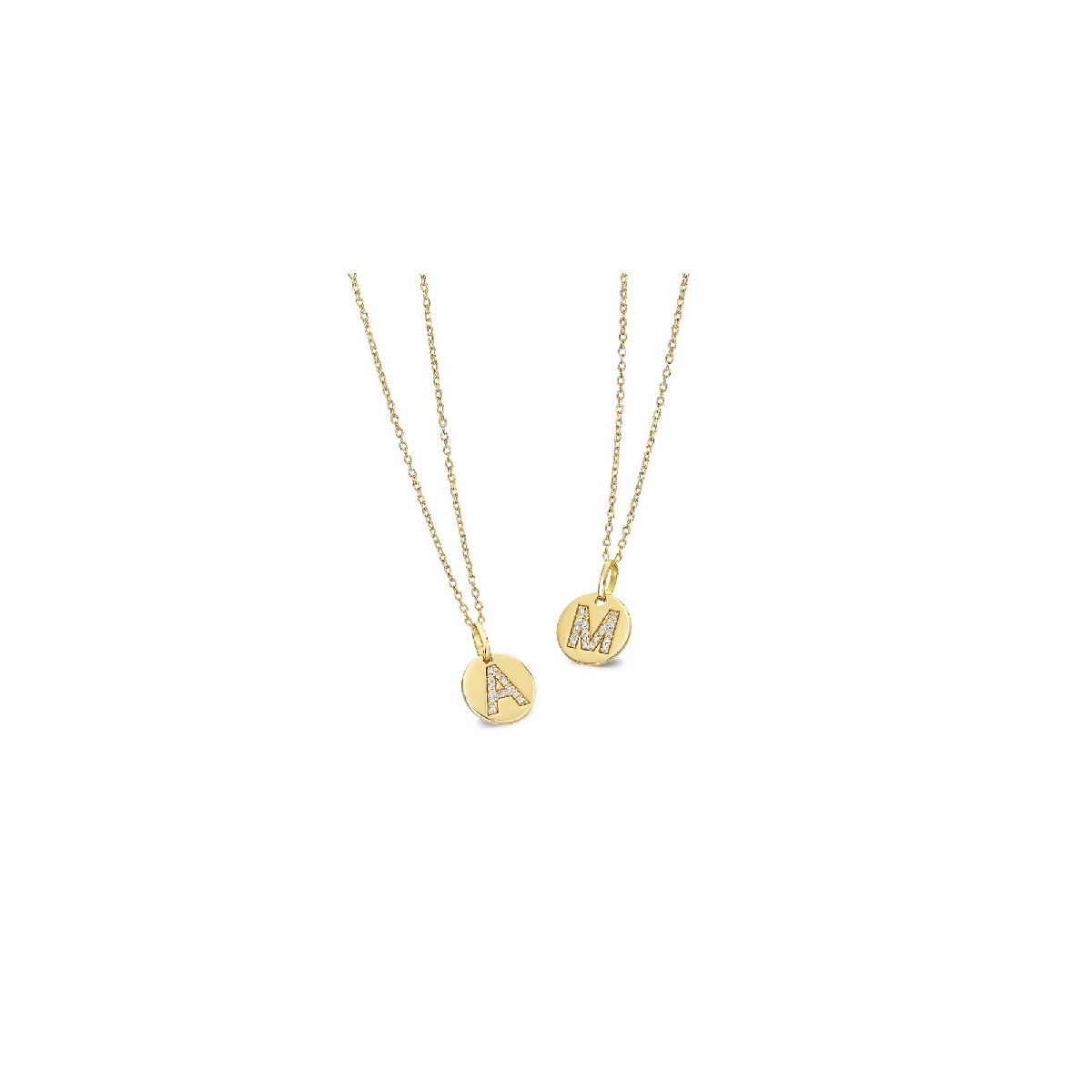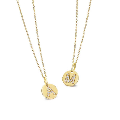 Chapa de oro de 18k inicial con diasmantes talla brillante y cadena a juego. Posibilidad de encargar cualquier inicial.