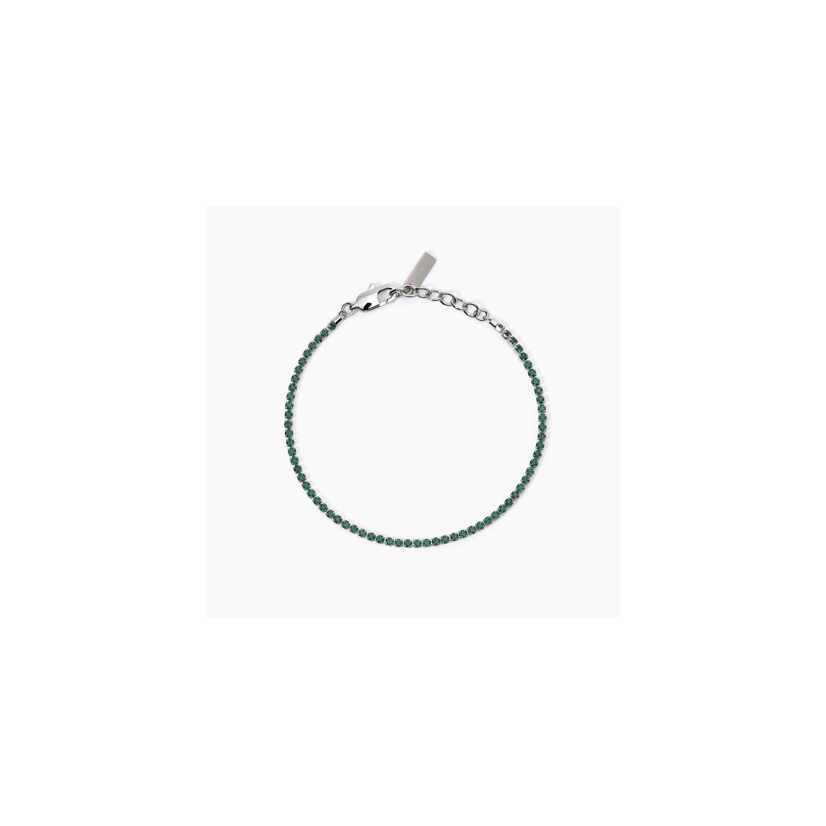 Pulsera de tenis de acero 316L con cristales verdes de 2 mm de diámetro, largo ajustable de 18 a 20,5 cm.