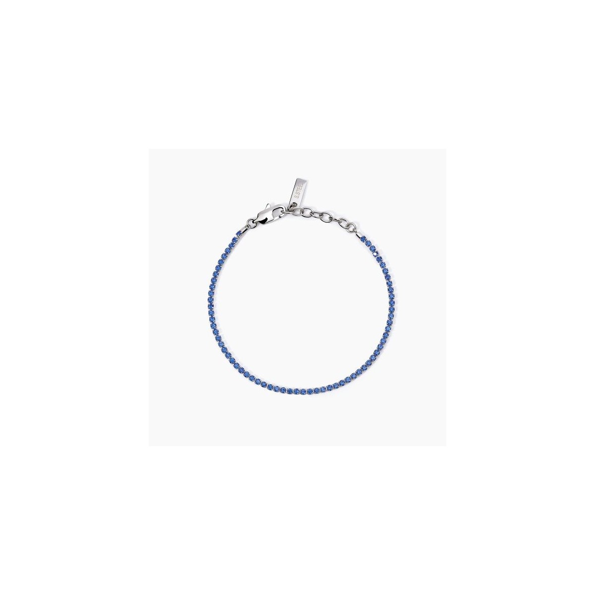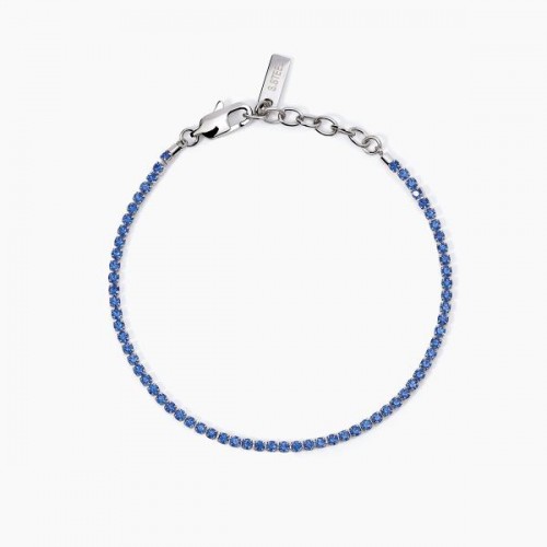 Pulsera de tenis de acero 316L con cristales azules de 2 mm de diámetro, largo ajustable de 18 a 20,5 cm.