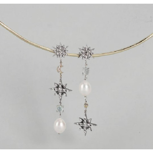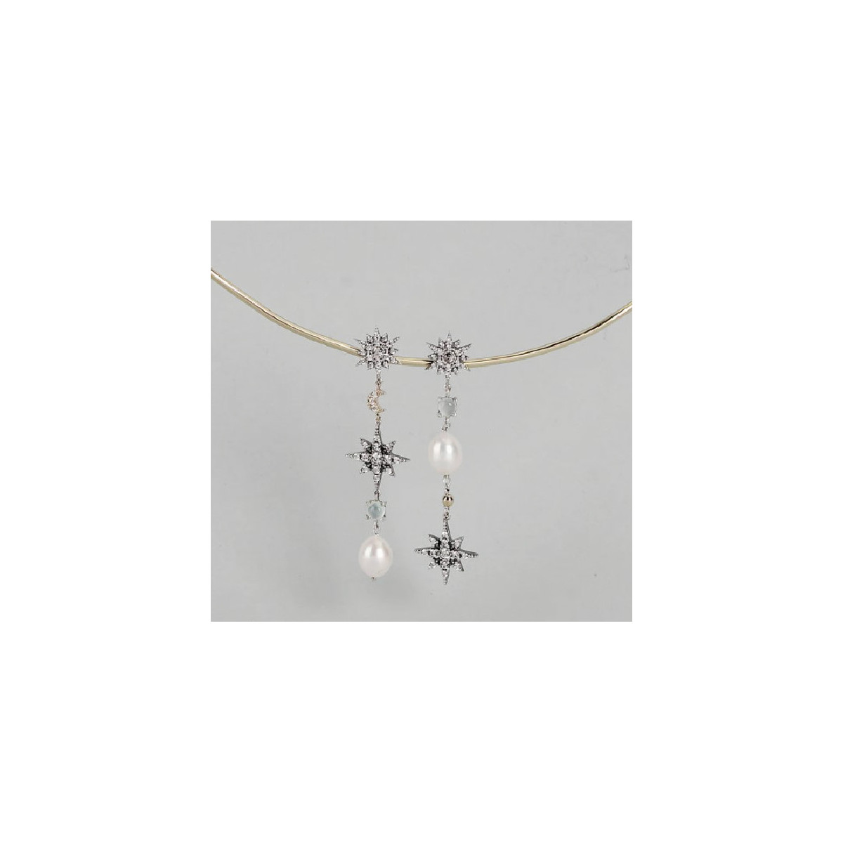 PENDIENTES ORO Y PLATA ESTRELLAS CABUJON 10759