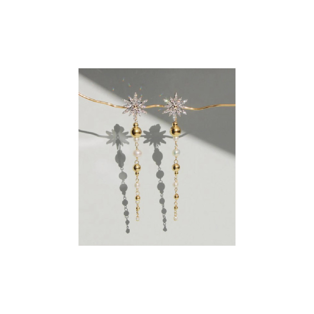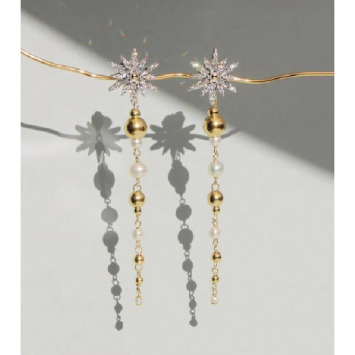 PENDIENTES ORO Y PLATA PERLA ESTRELLA BAGUETTE