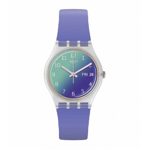 Swatch Ultralavande, máquina de cuarzo caja de plástico y correa de silicona.