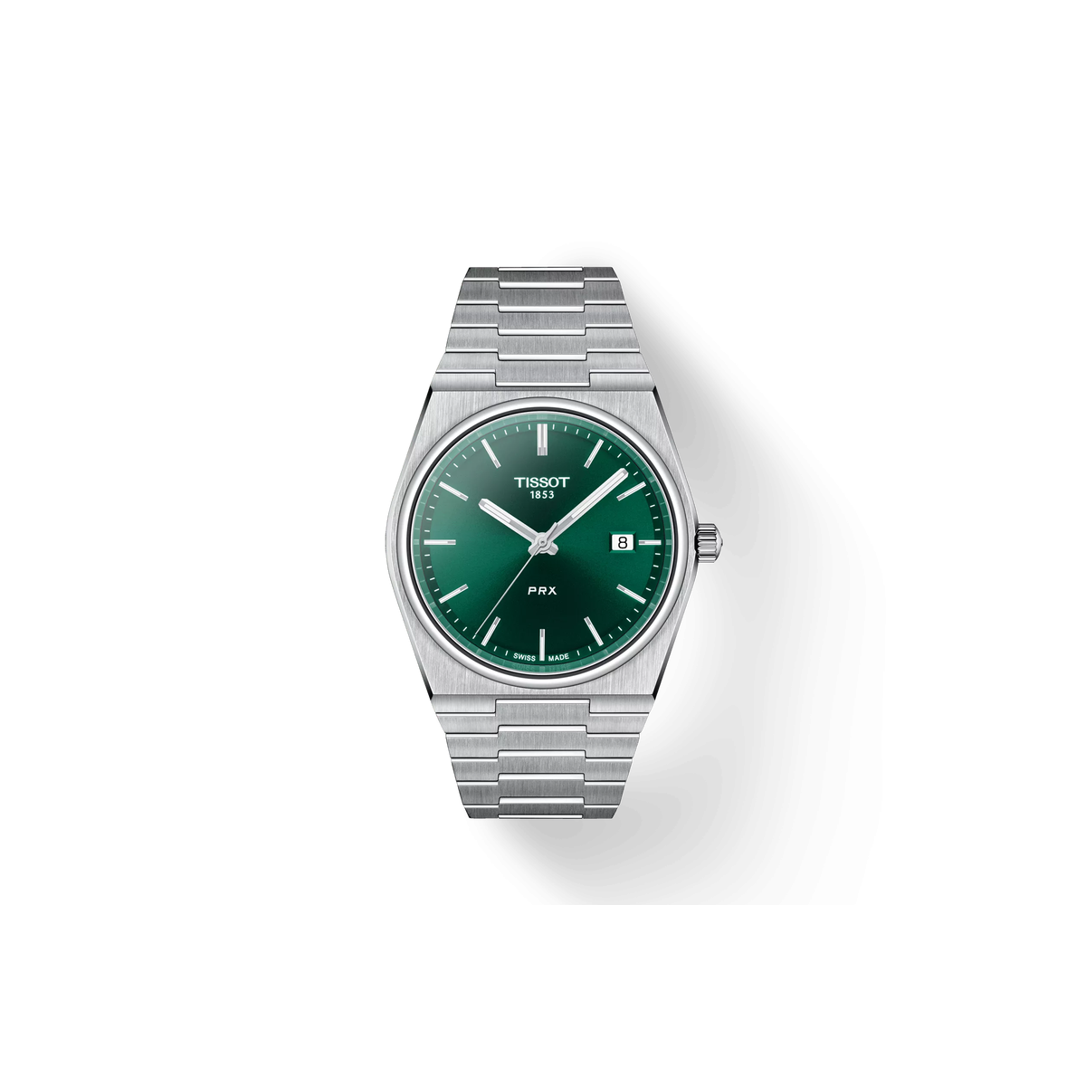 Reloj Tissot PRX T137.410.11.091.00 para hombre con caja de acero de 40 mm, esfera verde con índices y agujas agujas luminiscentes, cristal de zafiro abombado resistente a los arañazos y brazalete de acero. Sumergible 100 metros. Movimiento de cuarzo Swiss.